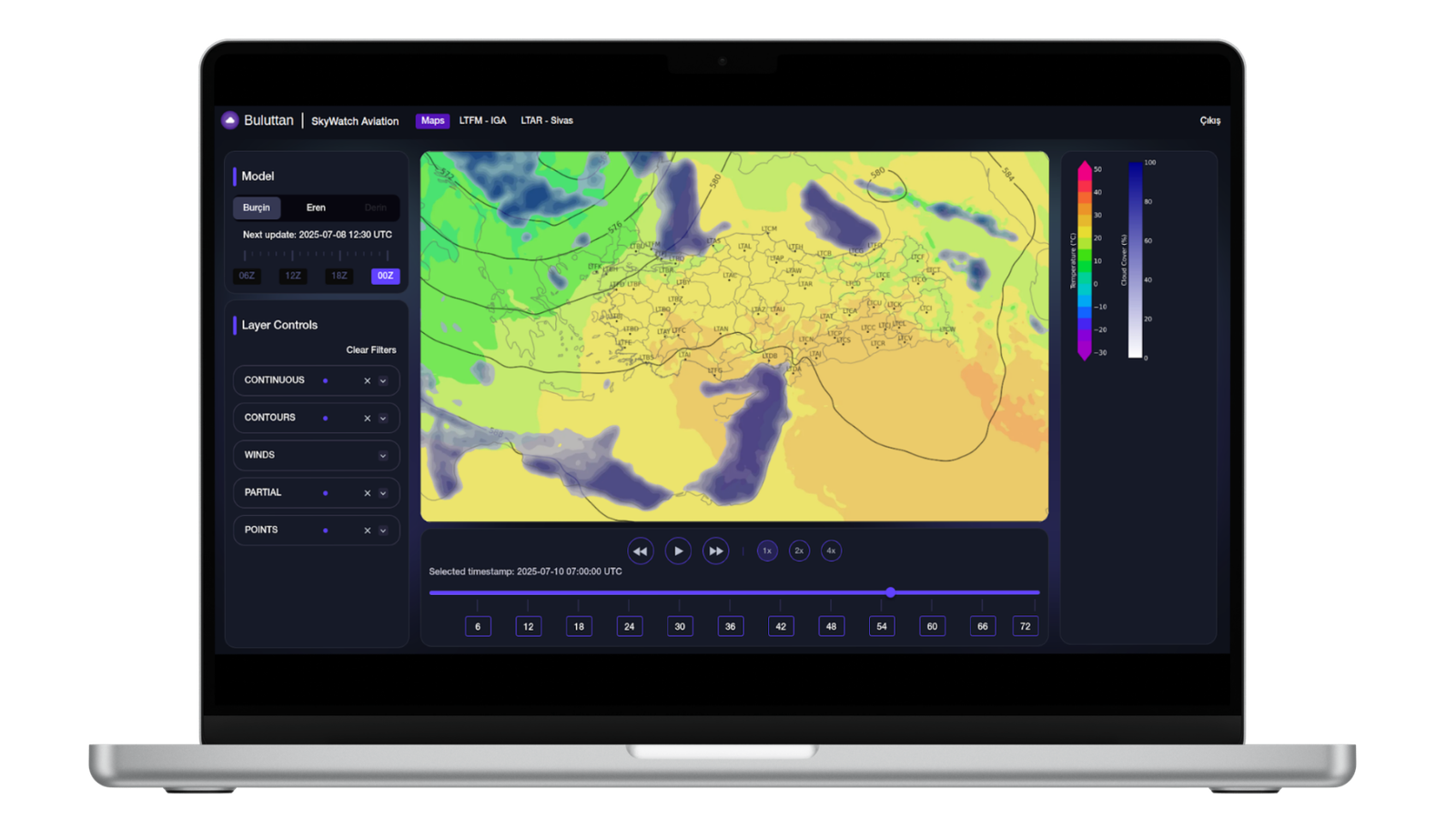 Havacılık alanına sunduğumuz hava zekası çözümleri hakkında daha fazla bilgi için bizimle iletişime geçin: contact@buluttanwx.com